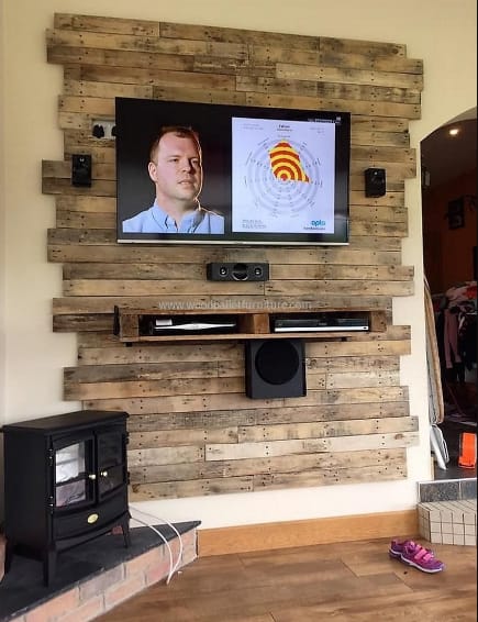 TV backdrops are popular nowadays. The good news is that you can build it yourself with wooden pallets. These pallet ideas for walls are simple yet creative, not to mention it can make your living room feel warmer. You can make additional shelves to organize more items.