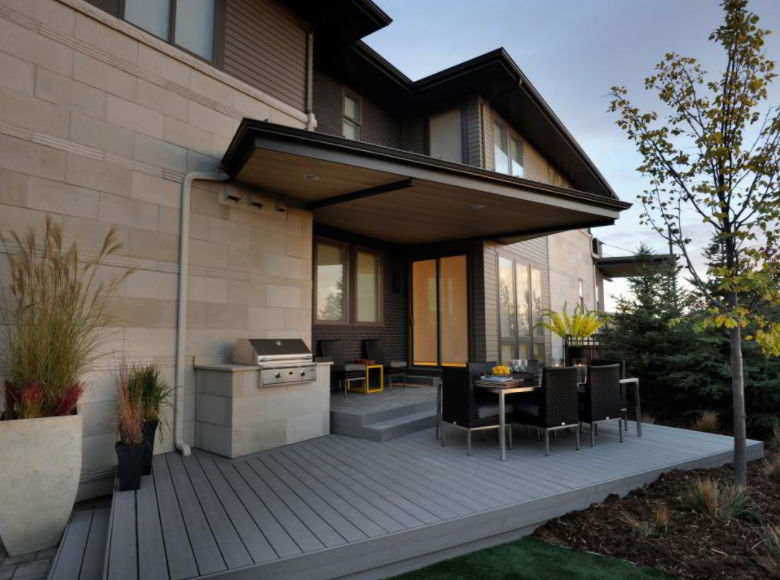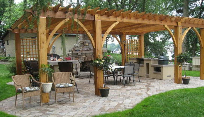 Paver stone gives a natural feel to the patio and is good resistance to exterior materials. You can use stones with dark colors for the grill so they don’t get dirty easily while cooking.