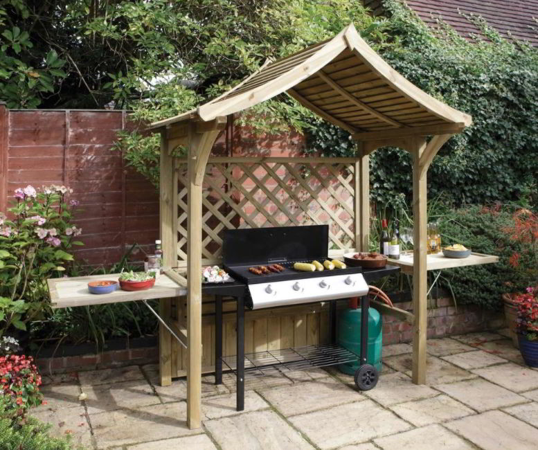 It’s simple, you just need to provide a gazebo made of wood with a roof made of rattan or bamboo. While the grill is placed on a metal table in the middle of the gazebo.