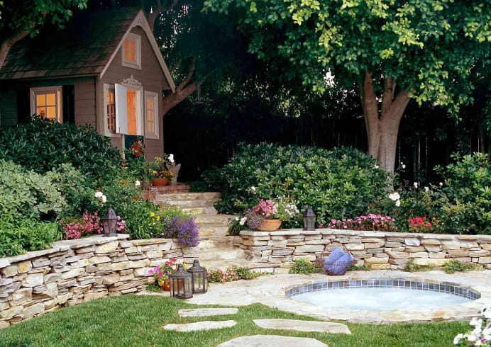 Retaining Wall Ideas for Sloped Backyard with Lanterns