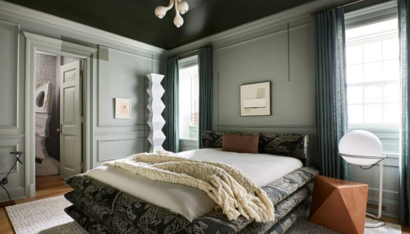 Sage green has gained popularity as a warm-tone color. It is applied to the interior and exterior, especially a bedroom.