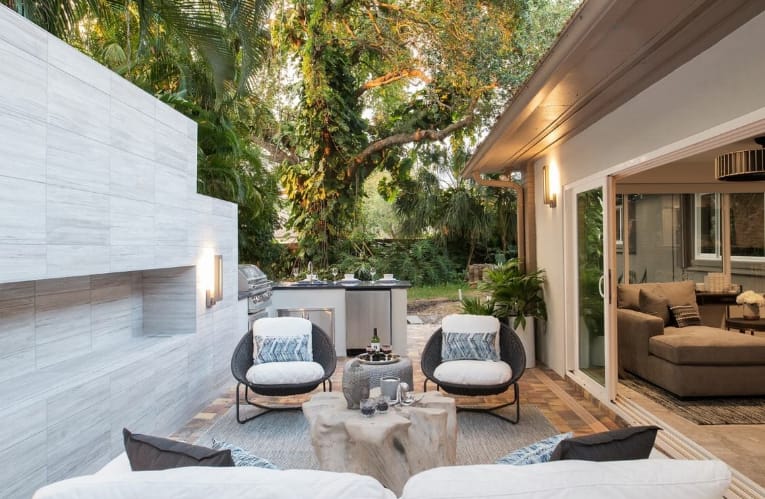 To make the design more Scandinavian, consider wooden lighting fixtures, live plants like monstera, rubber fig, and aloe vera, and other supplements that match Scandinavian tastes. In this new outdoor kitchen, your family can enjoy cozy dinners and warm house parties.