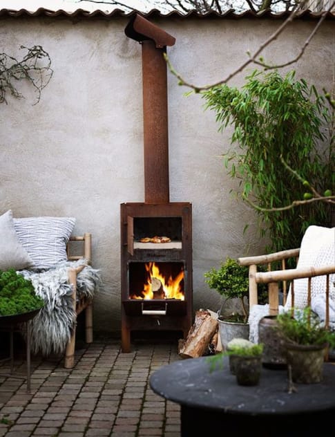 A Scandinavian outdoor fireplace is often simple and minimalistic in design. It’s usually made of natural stone or brick and has clean lines that blend well with the surroundings. Some outdoor fireplaces have built-in seating areas, making them even more functional and comfortable.