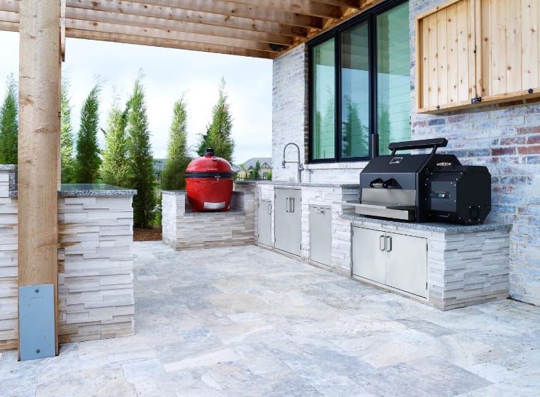 This amenity often comes with a grill, sink, and countertop, and it may also include a built-in refrigerator, storage space, and a seating area. With an outdoor kitchen, you can prepare and cook meals while enjoying the fresh air and beautiful scenery.