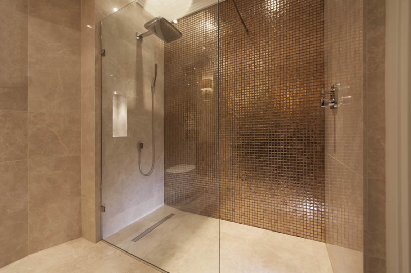 Plus, they add some amazing shine to any bathroom. They really pull the space together. Since they are already dazzling, you can go for beige-colored floor. Then, your wet room must be adorned with glass doors.
