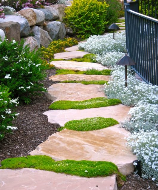 Sloped stones with moss