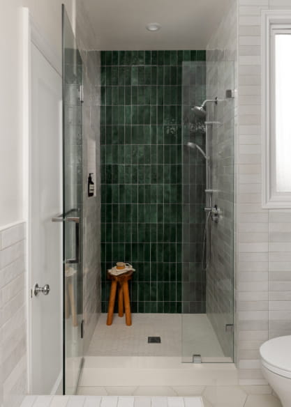 One of the best small tiled shower ideas is to focus on the shower. With limited space, you want to highlight what’s important and draw attention away from the size of the shower. You can accomplish that by installing tiles that bring focus to the shower.