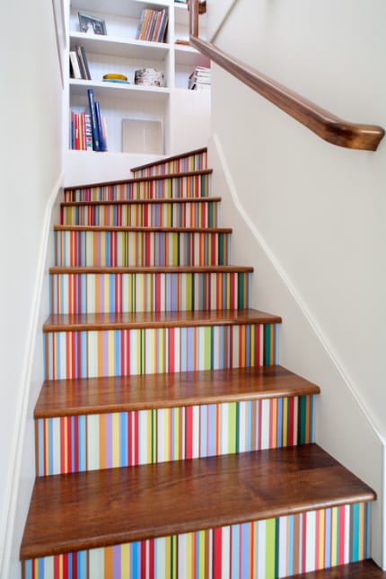 Another option that you can consider is a stair rise with wallpaper. The step of the stairs is plain, but the riser is covered by wallpaper.