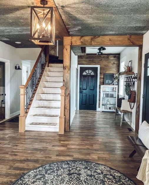 A stair riser with a rug will give you a better look at the house interior which looks plain. The rug should have a pattern since most stair riser has a plain look.