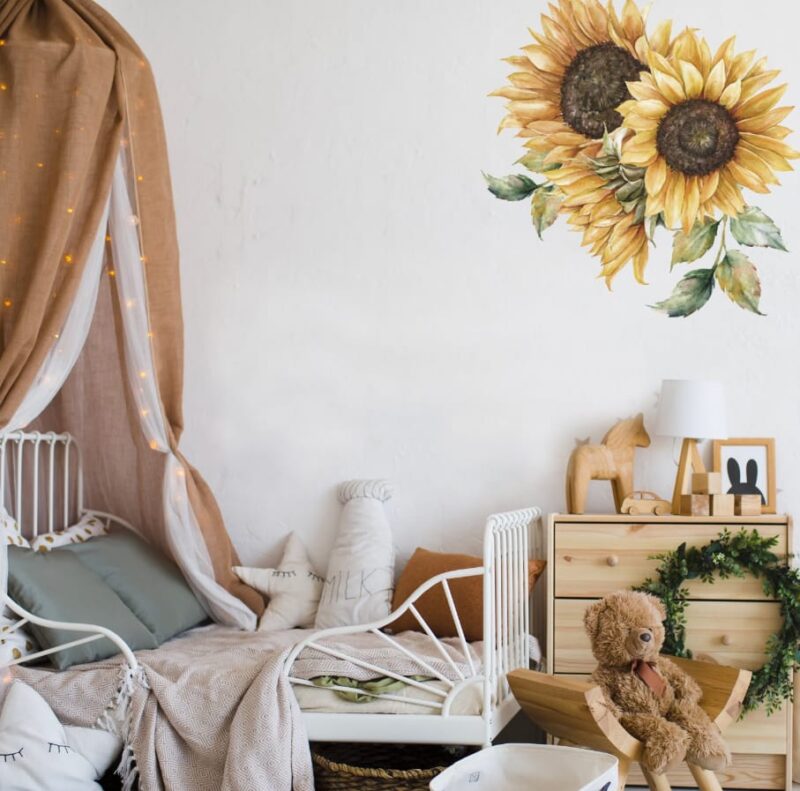 Kid’s Montessori Bedroom with Sunflower Wall Art