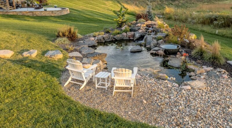 Water your plants as needed, prune overgrown bushes, and remove weeds regularly. Clean water features to prevent algae buildup and ensure they function properly.