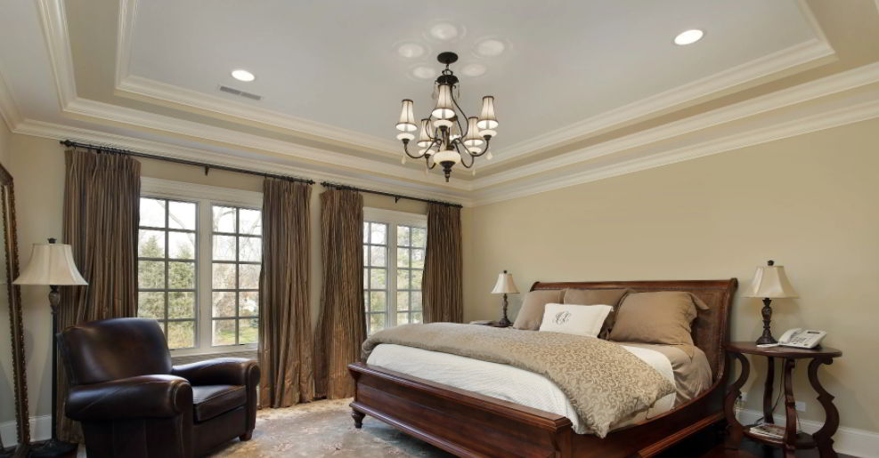 Tray Ceiling with Decorative Hanging Lamp