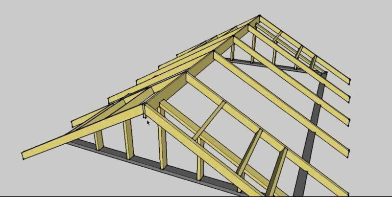 Fink roof is a simple roof truss for shed that consists of multiple triangles connected one another. The design allows the load to be distributed evenly across the structure, ensuring optimum strength and stability. That’s is why fink truss is common in commercial buildings.