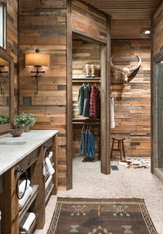 Pallet wood paneling works well in any informal room such as a bathroom, pool house, workshop, or studio. But you should not use this wall paneling if you have formal elements in your house.