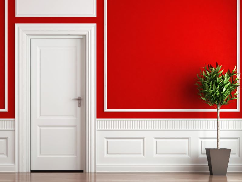 This crisp white color of wainscoting can be free to play with any color you want, such as that bright red in the picture.