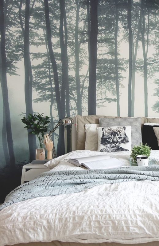 This misty forest wall mural looks great in this master bedroom. It is calming and refreshing. Therefore, you will feel more relaxed in the bedroom.