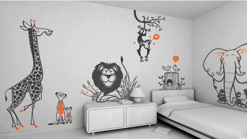 To make your kid’s bedroom looks more adorable you can add an animal wall mural in it. You can go for colorful or minimalist wall mural like this one.