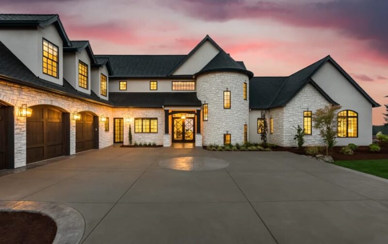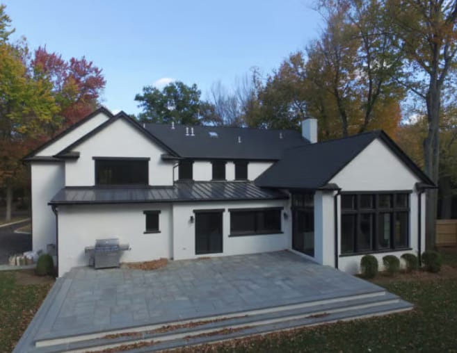 The castle house is another perfection to execute the white house with black trims. It is a big house with different parts of the house, including a number of rooftops.