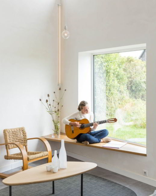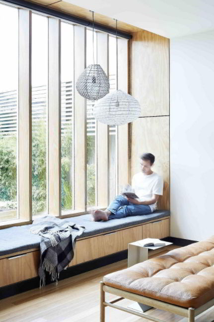 How about making a cozy seating out of a sill? You can enjoy good books or listen to favorite music while appreciating outdoor view.