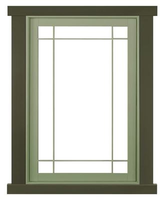 This window trim is eminently simple, but it still looks fashionable. The dark brown flat stock trim complements the window grilles, sash, sill, and head which were painted gray-green.